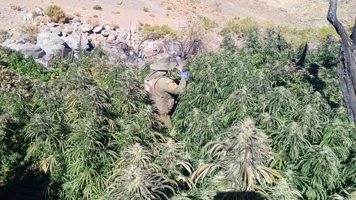 La intervención se realizó en la quebrada Vallecillo, sector de Chacay, donde se identificaron dos corrales artesanales utilizados para el cultivo y procesamiento de droga identificada como cannabis. En el lugar, el personal policial incautó un total de 1. 342 plantas en proceso de crecimiento, además de 188 kilos con 160 gramos de marihuana a granel en etapa de secado.