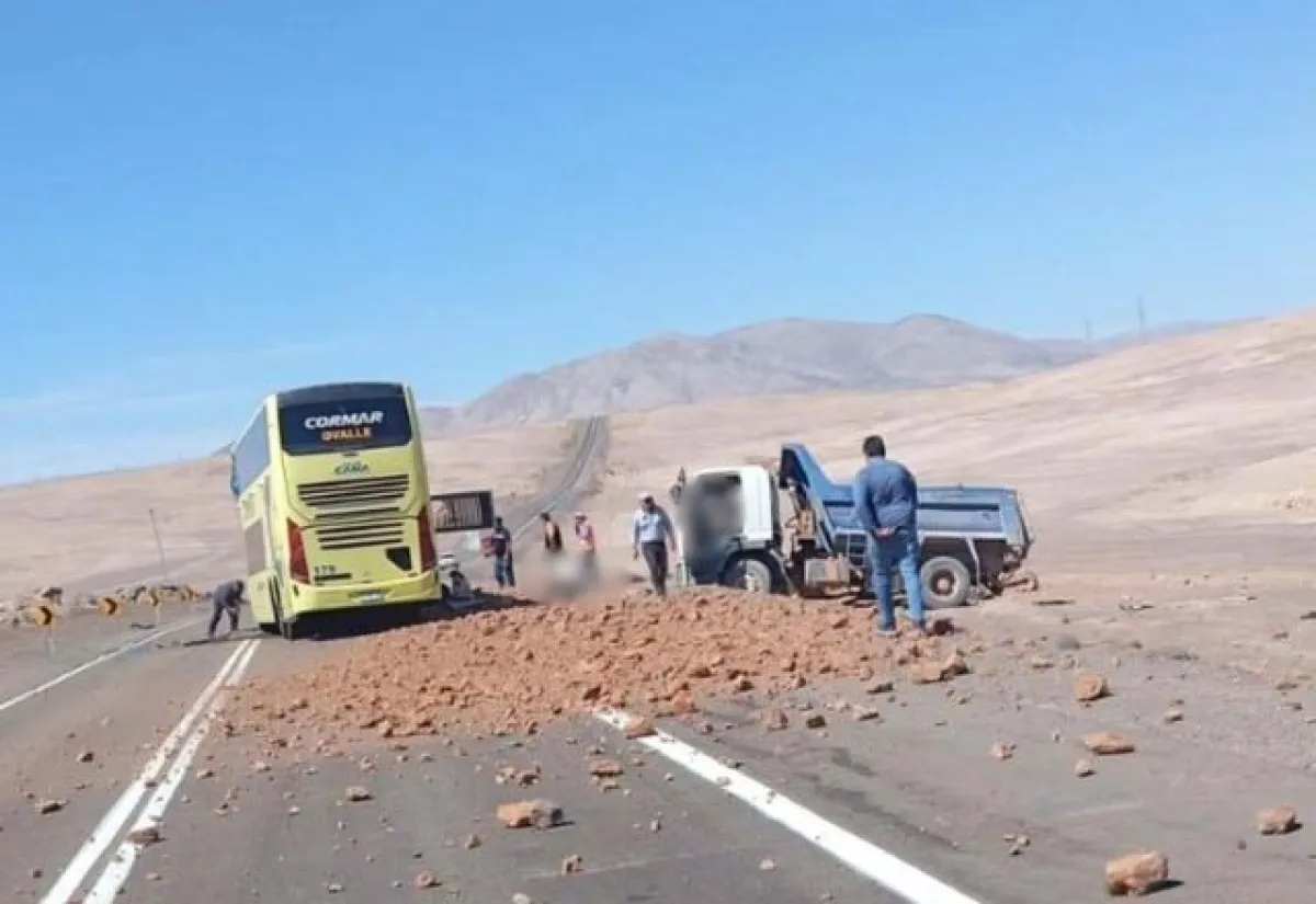 Dos personas fallecidas y al menos 15 lesionados dejó una grave colisión frontal registrada la mañana de este lunes en la región de Antofagasta, específicamente en el kilómetro 47 de la ruta B-24, en las cercanías de Tocopilla. El accidente ocurrió alrededor de las 11:30 horas, cuando por causas que se investigan, un bus interurbano y un camión de carga impactaron de frente en un hecho de alta energía. Según información entregada por Carabineros de la 4ª Comisaría de Tocopilla, el bus —perteneciente a la empresa Cormar de Ovalle— se dirigía hacia Iquique, mientras que el camión tolva transitaba en sentido contrario, con destino a Tocopilla.