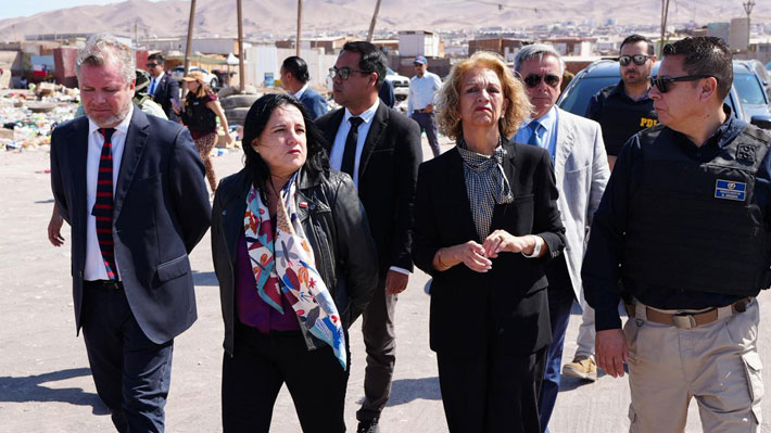 En el marco de un nuevo despliegue en el norte del país, la ministra de Seguridad, Trinidad Steinert, llegó este domingo a la Región de Tarapacá para participar de distintos operativos de control. Así, se trasladó en primer lugar hasta la toma del sector El Boro, en Alto Hospicio, lugar donde se realizó por parte de las policías un control de migrantes y prófugos que, tras un total de 50 fiscalizaciones de identidad y vehiculares, terminó con la detención de tres personas. "Una por orden vigente por el delito de tráfico de drogas en pequeñas cantidades, una extranjera por violencia a la identificación y una persona por portar un arma blanca", señaló el General de Carabineros Andrés Miranda.