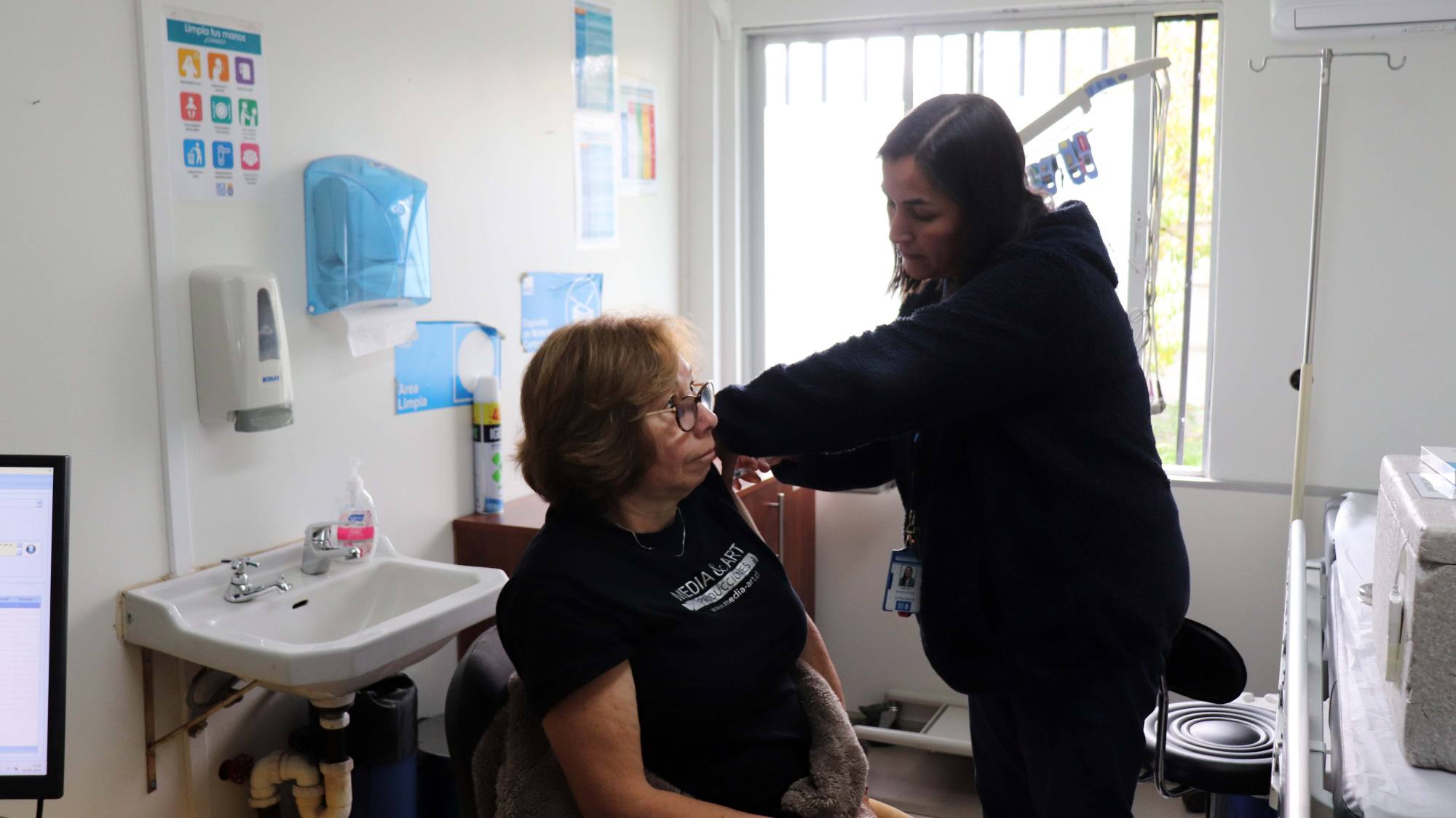 "Ahora se vienen las alzas de los virusrespiratorios, en invierno, los cambios de temperatura. Entonces, sobre todolos adultos mayores, que son más sensibles a esto, los niños, toda la poblaciónobjetivo, debería tener sus vacunas al día por el riesgo de contraer lainfluenza". Enfermera Gabriela Medina.